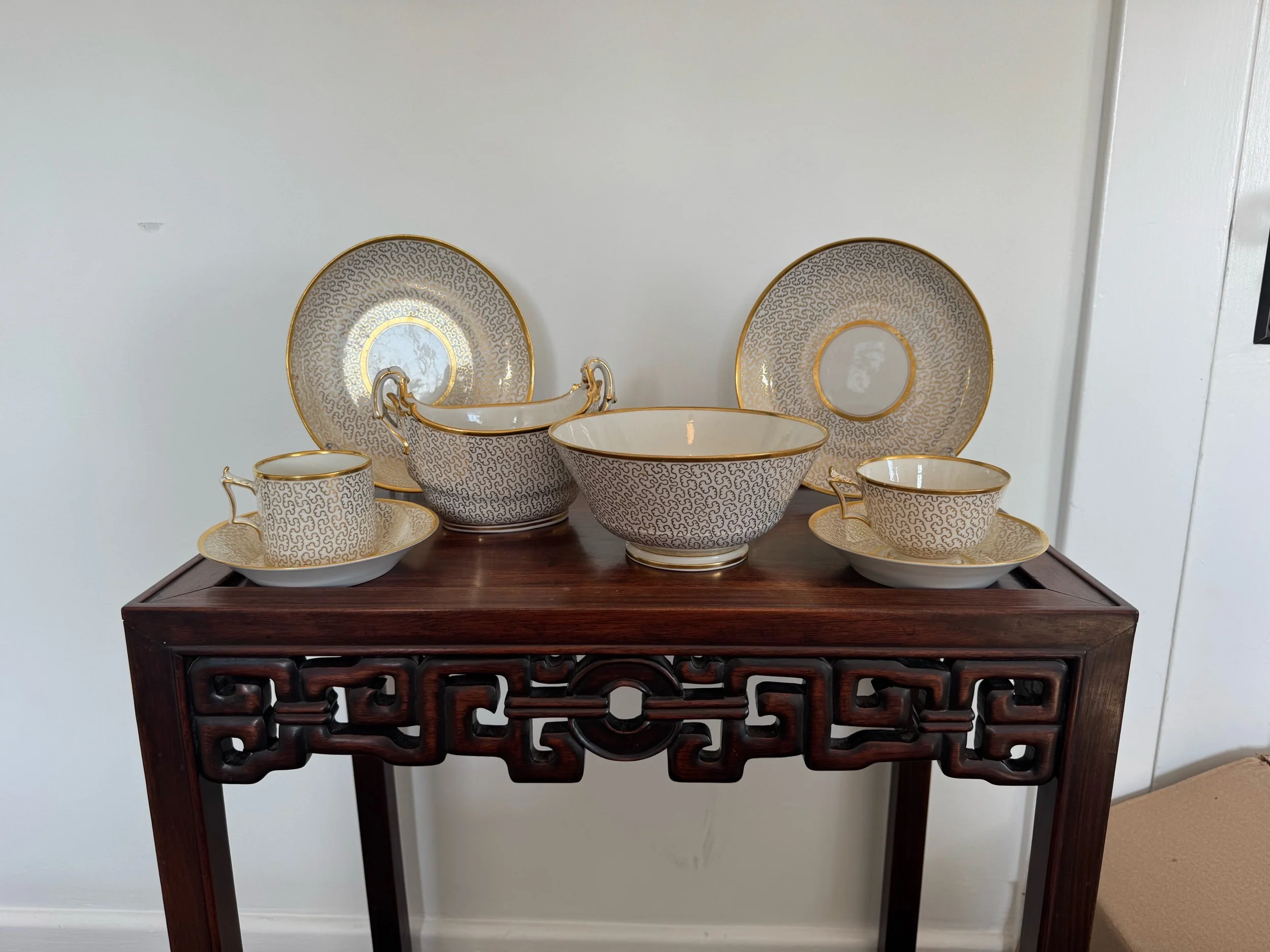 Categories: All Objects Furniture Lighting Artworks All / Objects Spode ‘Dollar’ Pattern Flared Vase, circa 1810 $250.00 Zachariah Boreman-decorated Teacups and Saucers, circa 1785 $875.00 Pair ‘Church Gresley’ pattern Coalport Soup Plates, circa 1800 $625.00 Coalport ‘Church Gresley’ square dish, circa 1800 $550.00 Chamberlain’s Worcester Armorial dish, circa 1810 $150.00 Derby plates with floral decoration, circa 1780 $350.00 Documentary creamware pitcher with War of 1812 naval battles, circa 1815 $475.00 Shipwreck celadon porcelain bowl, circa 1700 $650.00 Chelsea Dinner Plate with Monochrome Decoration, circa 1765 $250.00 Fine and Large Derby Vase with Landscape Scene, circa 1830 $850.00 Porcelain vase with blue bird and cherry blossom decoration, 20th century. $500.00 Pair Derby lozenge dishes with botanical specimens, circa 1790 $850.00 Pair Coalport plates with botanical specimens, circa 1805 $500.00 Christian Fischer porcelain dish with Maritime scene, circa 1840 $175.00 Caughley Lozenge-shaped dessert dish, circa 1790 $250.00 Armorial plate with marbled ground, Barr Flight & Barr, circa 1810 $200.00 Inlaid Rosewood Desk Box, circa 1830 $400.00 Chamberlain Worcester Tea and Dessert Service, 20pcs, circa 1800 $1,350.00 Spode ‘Dollar Pattern’ Tea cup and Saucer, circa 1805 $150.00 Flight Barr & Barr cabinet plate with painting in manner of George Davis, circa 1820 $300.00 Armorial Plate with marbled decoration, Flight, Barr, & Barr, circa 1820 $100.00 ‘Twin Pagodas’ early Staffordshire pitcher, ex-Zeller collection, circa 1790 $550.00 Barr Flight and Barr pair of dessert plates, circa 1805 $500.00 Three Barr Flight and Barr dessert plates with English ruins, circa 1805 $675.00 Barr Flight and Barr ‘Tunbridge Castle, Kent’ shell dish, circa 1805 $525.00 Barr Flight and Barr shaped square dish with ruins, circa 1805 $625.00 Barr Flight and Barr shaped oval dish with named landscape of ruins, circa 1805 $575.00 Barr Flight & Barr pair of dessert plates with named ruins, circa 1805 $500.00 Barr Flight and Barr serving dish with ruins scene, circa 1805 $925.00 Flight and Barr Worcester Partial Tea Service $550.00 Chamberlains Worcester ‘Thumb and Finger’ Teapot, circa 1800 $550.00 Harlequin set of Derby neoclassical plates, circa 1810 $400.00 Pair Spode ‘Dollar Pattern’ soup plates, circa 1810 $300.00 Pair Spode ‘Dollar Pattern’ Dinner Plates, circa 1810 $250.00 English Botanical plate, circa 1800 $150.00 Chamberlain’s Worcester Botanical plate, circa 1810 $125.00 Spode ‘Dollar Pattern’ dessert dish, circa 1805 $175.00 Victorian Sword Cane, circa 1880 $645.00 Pair Worcester Dessert plates with Floral decoration, circa 1820 $250.00 Pair Topographical Dessert Plates by Flight Barr & Barr, circa 1820 $525.00 Coalport partial dessert service in ‘Thumb and Finger’ pattern, 16pcs, circa 1800 $1,100.00 Rare labeled ‘Ahning’ Chinese Export campaign trunk, circa 1820 $950.00 Nelson and Trafalgar Documentary Creamware Jug, circa 1805 $1,050.00 ‘Earl St Vincent, Admiral of the Blue’ Creamware Pitcher of Naval interest, circa 1800 $775.00 Fine ‘Battle of the Nile’ documentary Creamware Jug, circa 1800 $775.00 19th century traveling Apothecary Chest $575.00 Chinese Imari porcelain plate, circa 1730 $275.00 Chinese export Armorial Milk Jug, circa 1760. $450.00 George III Inlaid Mahogany Tea Caddy, circa 1800 $650.00 Pair of Derby Topographical Tea Cups and Saucers, circa 1805 $550.00 Chinese Export Coffee Pot, circa 1730 $575.00 Set 6 Chinese Export plates with Armorial Crest, circa 1755 $1,250.00 Han Dynasty Covered Vessel, ex-Marchant London $1,295.00 Assembled English Tea Service, circa 1820 $450.00 Two Japanese Hand Mirrors in Bronze, Edo Period $675.00 Pair Barr, Flight, & Barr Armorial Plates, circa 1805 $725.00 Walnut Woodworker’s Box $145.00 Ceramic Vase with Lavender Crystalline Glaze $85.00 ‘Polar Bear’ after François Pompon $125.00 English Transferware Soup Plate in Dollar pattern, c. 1820 $75.00 Sold out